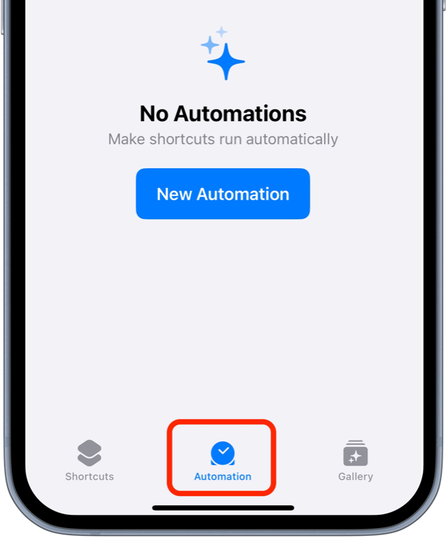 Shortcuts app on your iPhone, then tap on the Automation tab at the bottom.