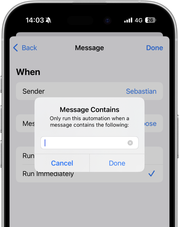 Use the Sender option to redirect messages only from specific contacts or phone numbers.