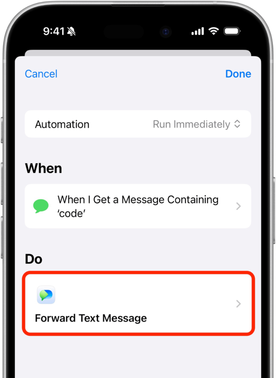 Tap the Forward Text Message action to edit the Shortcut.