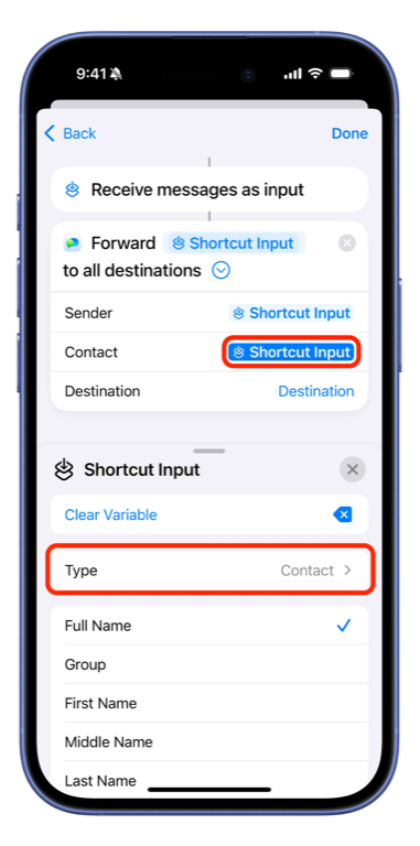 - Set Contact to Variables > Shortcut Input