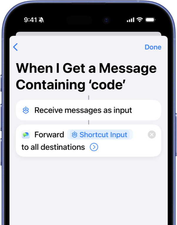 By using it together with the Forward SMS app, you can automatically forward text messages to Email, Slack, Microsoft Teams or Discord. This guide will walk you through setting up the Shortcuts Automation to make that happen.